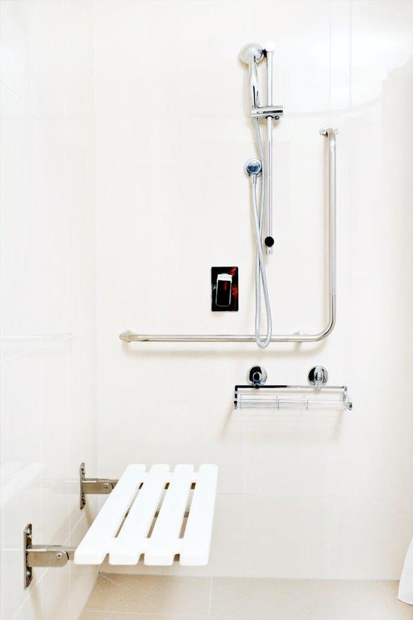 The bathroom is fully equipped with handrails and the large shower has a fitted shower seat with plenty of room for whatever mobility aids you require, including wheelchairs.